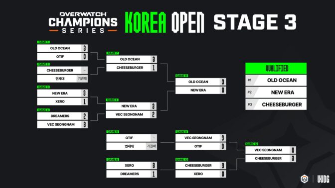 OWCS KRステージ3予選は、Old Ocean、New Era、CheeseBurgerの3チームがOWCS KOREAステージ3予選を勝ち抜き、本戦出場を決めています。