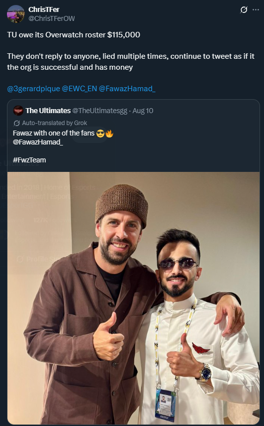 TUはOverwatch部門の選手たちに11万5,000ドルの未払いがあります。